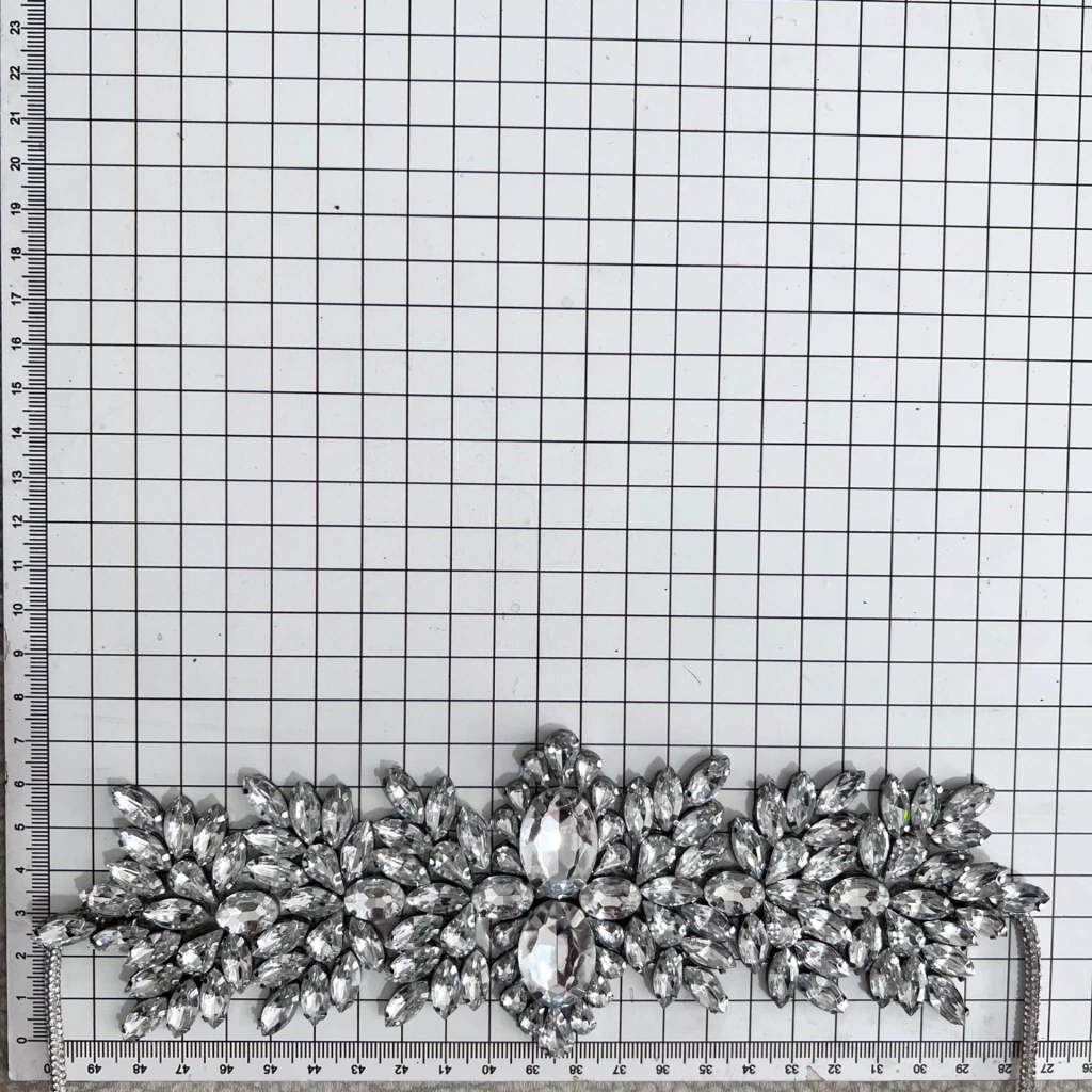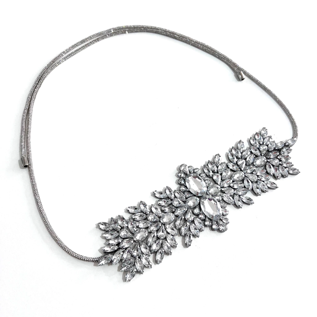 Faixa em pedrarias com fio roliço em strass, na cor prata, para amarração. Pronto para usar.
