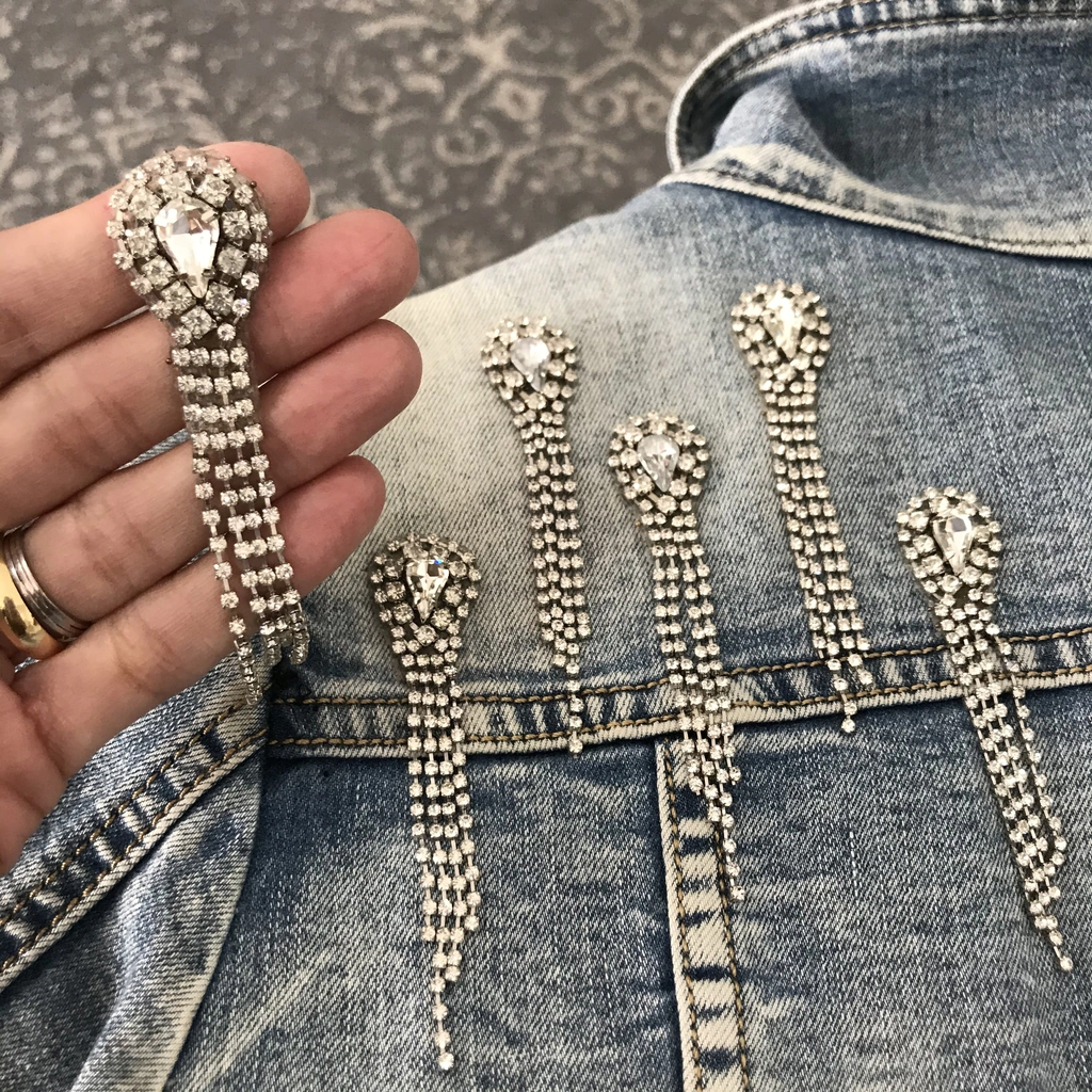 Este aplique em pedrarias é perfeito para você que adora ousar e que gosta de um brilho! Valorizam as suas peças, tornando-as únicas. Podem ser aplicados em calçados, acessórios (bolsas, mochilas), jaquetas (jeans, couro, etc.). shorts, calças, T-shirts, etc.